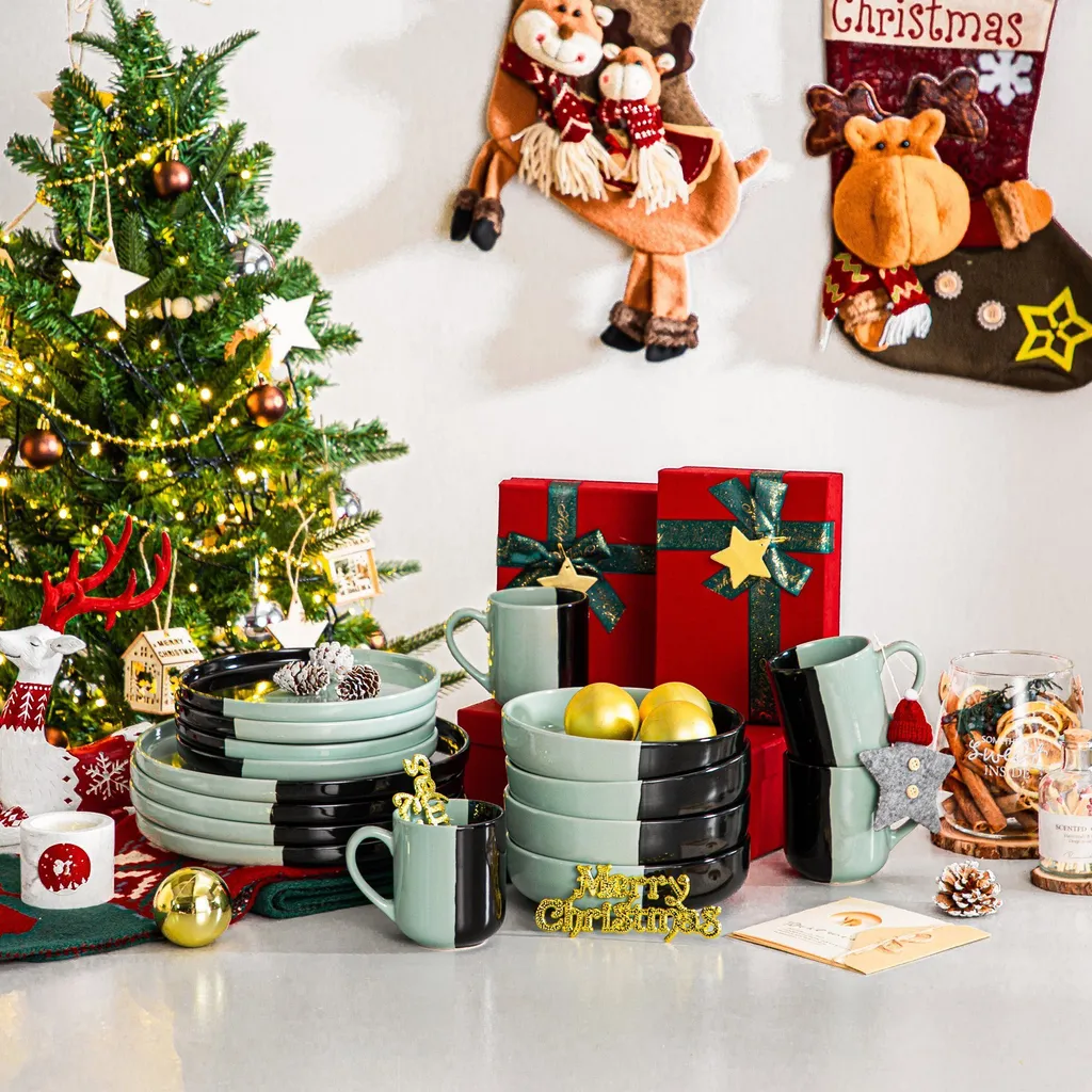 - 【Außerordentliches Design.】Aus hochwertigem und umweltfreundlichem Steinzeug ist das vancasso Ess Geschirrset von Hand gefertigt. Glatte und exquisite Glasur, stilvolle Mondschein Form, zweifarbiger Farbton-62% blaugrün mit 38% schwarz, ausgezeichnetes Design und elegantes modernes Aussehen entsteht eine einzigartige angenehme Harmonie.