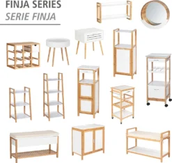 Moderner Eyecatcher: Der hochwertige Küchenwagen Finja im angesagten Scandi-Style überzeugt mit minimalistischem Design, hoher Qualität und schlichter Funktionalität. Der Beistellwagen aus natürlichem Bambus kombiniert mit weißen MDF-Platten ist ein echter Blickfang und der optimale Haushalts- und Partybutler