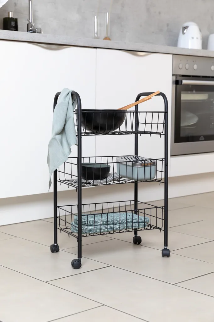 Besonders praktisch: Durch die schlanke Form füllt der Sammelwagen Lücken sinnvoll aus. Maße der Körbe: Länge 35,7 cm Breite 19 cm, Abstand von unterem zum oberen Korb: 18 cm