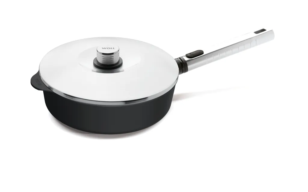 Anschließend werden Sie mit der einzigartigen Diamond XR-Strong Beschichtung versiegelt. Diese besteht aus 3 Materialschichten, welche für eine extreme Robustheit sorgen. Eine plasmagehärtete Basisschicht, eine bahnbrechende PEEK-Zwischenschicht sowie einer diamantverstärkten Oberschicht. Der ca. 8 mm dicke Induktionsboden aus ferromagnetischem Spezialstahl ermöglicht eine perfekte Hitzeverteilung für ein energiesparendes Kochen. Zudem ist der Schüttrand verstärkt und sorgt somit für sauberes Ausgießen von Saucen und eine höhere Stoßfestigkeit. Besonderheit der Woll-Produkte sind die abnehmbaren Stiele. Dadurch lassen sich die Pfannen besser reinigen, sind platzsparend und sind ideal als Auflaufform für den Backofen verwendbar. Die Griffe werden stabil durch eine eingegossene Messinggewindebuchse befestigt.