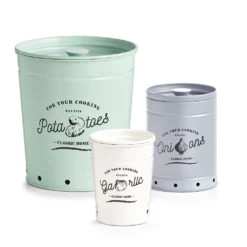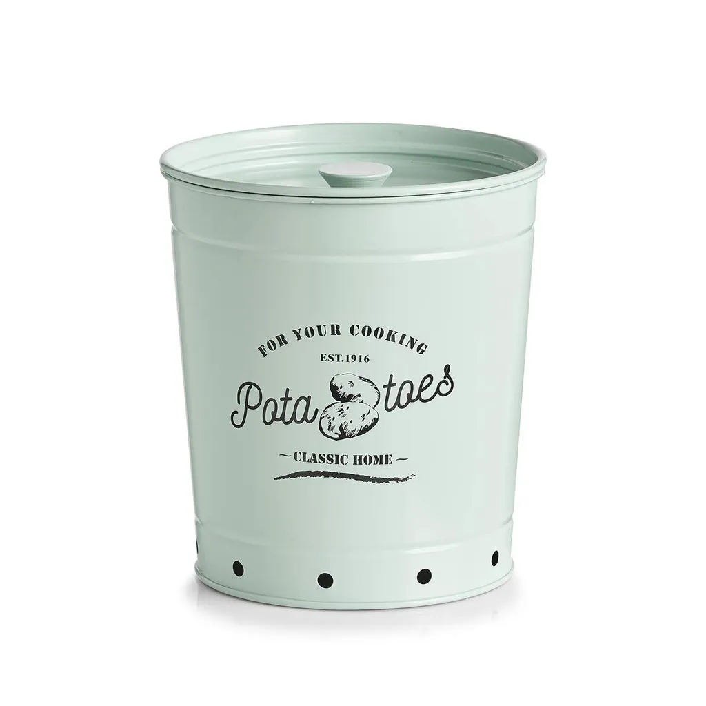 Als gesundes Grundnahrungsmittel gehören Kartoffeln jede Woche auf den Speiseplan. Damit sie in der Zwischenzeit frisch bleiben, müssen die Knollen richtig gelagert werden. Auf diese Bedürfnisse geht die Vorratsdose mit abnehmbarem Deckel im hellen Mint optimal ein. So lassen sich Kartoffeln nicht nur richtig, sondern auch dekorativ in jeder Küche aufbewahren. Der Artikel ist lebensmittelecht und aus hochwertigem Metall hergestellt.